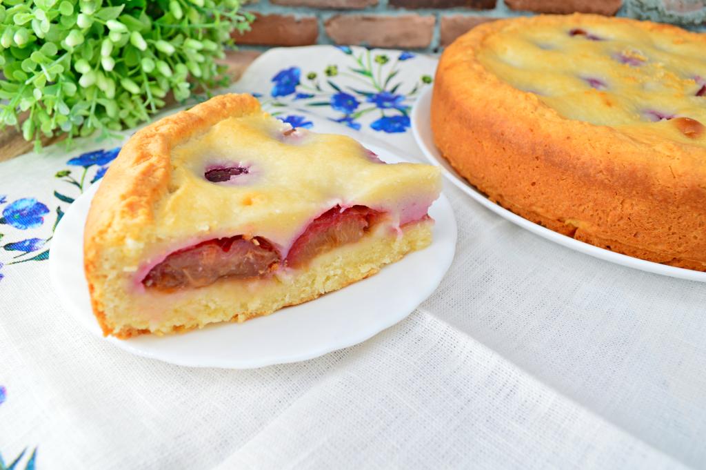Наивкуснейшему пирогу со сливами дать полностью остыть, чтобы сметанная заливка как следует стабилизировалась, и можно подавать его к столу.