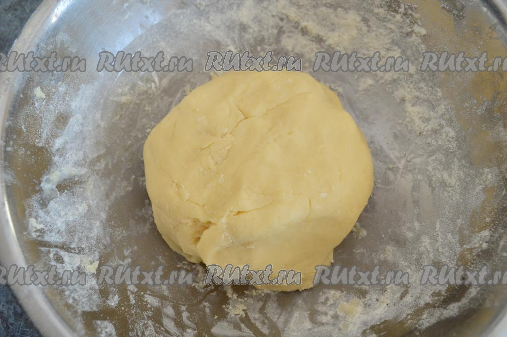 Постепенно добавляя муку, нужно замесить тесто, чуть-чуть липнущее к рукам. Как только тесто собралось в ком и почти не липнет к рукам, можно больше муку не добавлять и тесто больше не вымешивать. Накрыть миску с тестом (я накрываю миску тарелкой) и убрать в холодильник минут на 20-30.