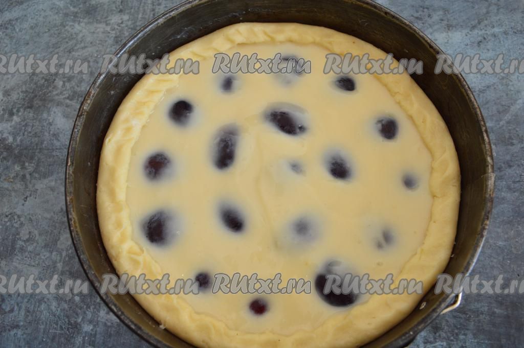 Залить сливы сверху сметанной заливкой. Если бортик теста будет выше, чем заливка, то рукой аккуратно загните его на заливку, как сделала я.
