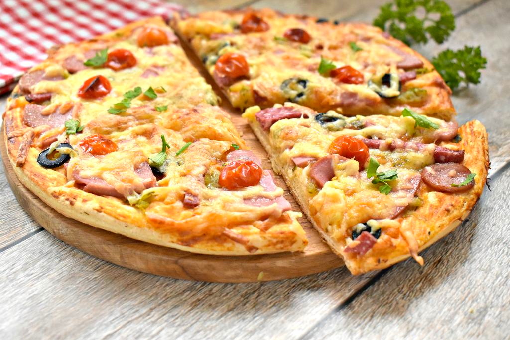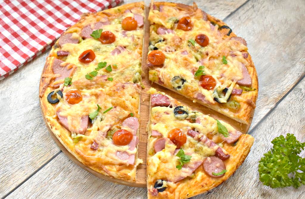 Предлагаю испечь вкусную, аппетитную пиццу с начинкой из солёных огурцов, колбасы, сыра и помидоров. Для этой выпечки можно взять как один, так и несколько видов колбасы. Сочная начинка в этой пицце отлично сочетается с мягкой дрожжевой основой. Чтобы в полной мере насладиться этой выпечкой, к столу её нужно подавать горячей. Такая пицца идеально подойдёт как для семейного ужина, так и для праздничного стола.