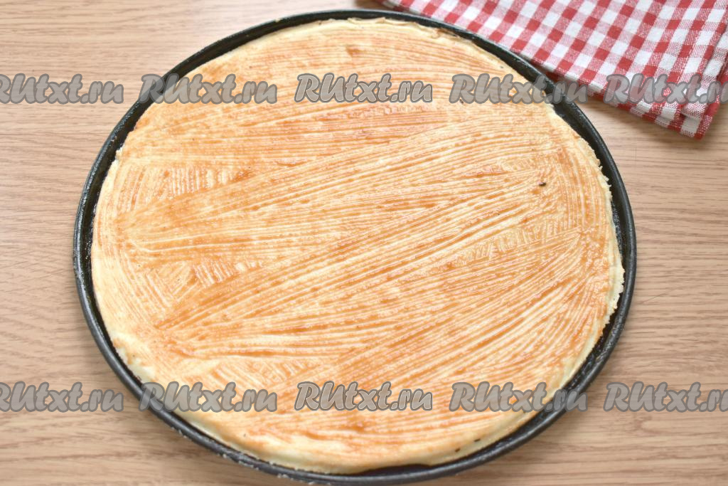 В рецепте количество ингредиентов дано для двух пицц диаметром около 25 сантиметров. Делим поднявшееся тесто на 2 части. Одну часть теста на присыпанном мукой столе раскатываем в круг диаметром 25 сантиметров и перекладываем на противень, смазанный маслом (или застеленный пергаментом). Поскольку у нас будет 2 пиццы, соответственно ингредиенты для начинки также делим на 2 части. Смазываем основание для пиццы томатным соусом (или кетчупом).