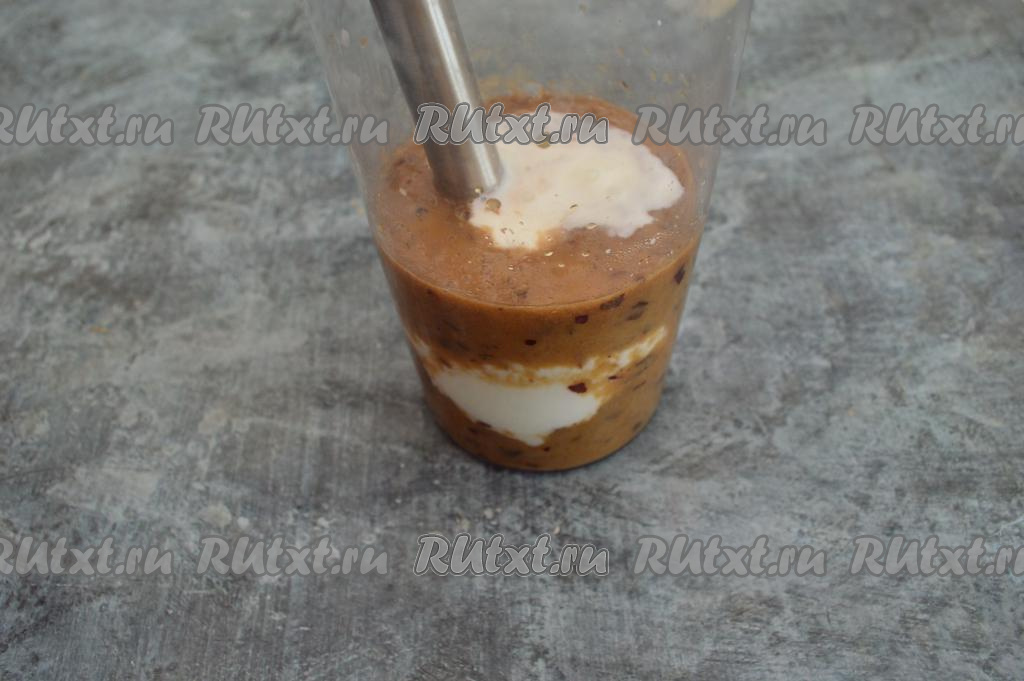 Затем в чашу с однородной бананово-сливовой массой влить кефир.