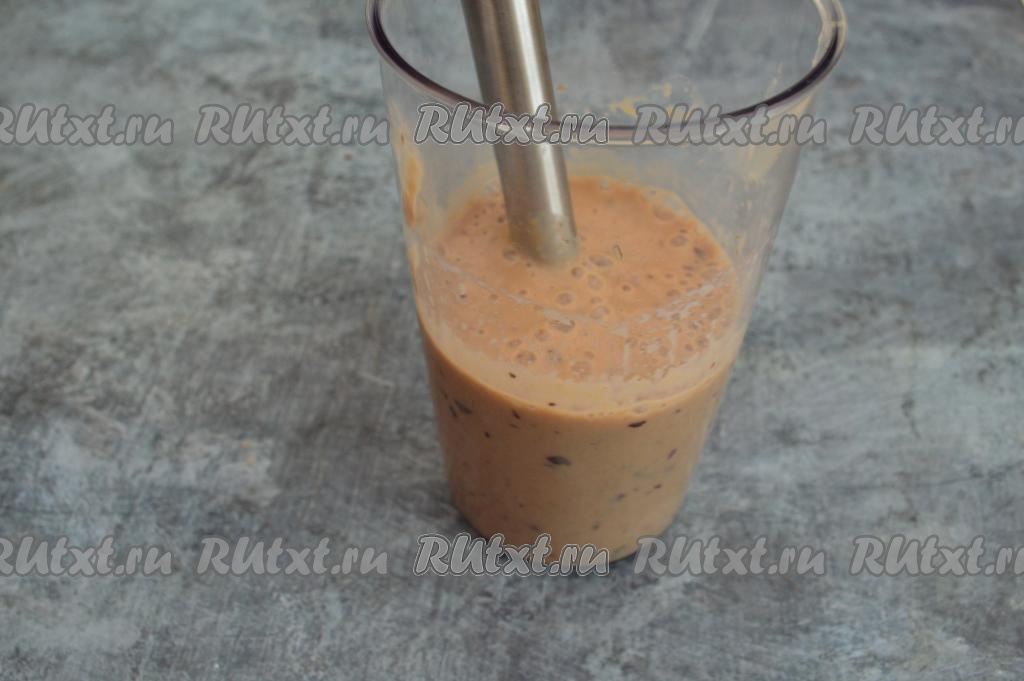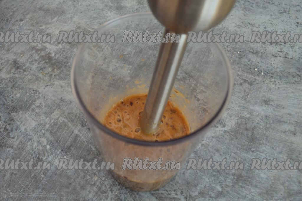 Пюрировать банан и сливы до однородности в течение 1-2 минут движениями погружного блендера "вверх-вниз".