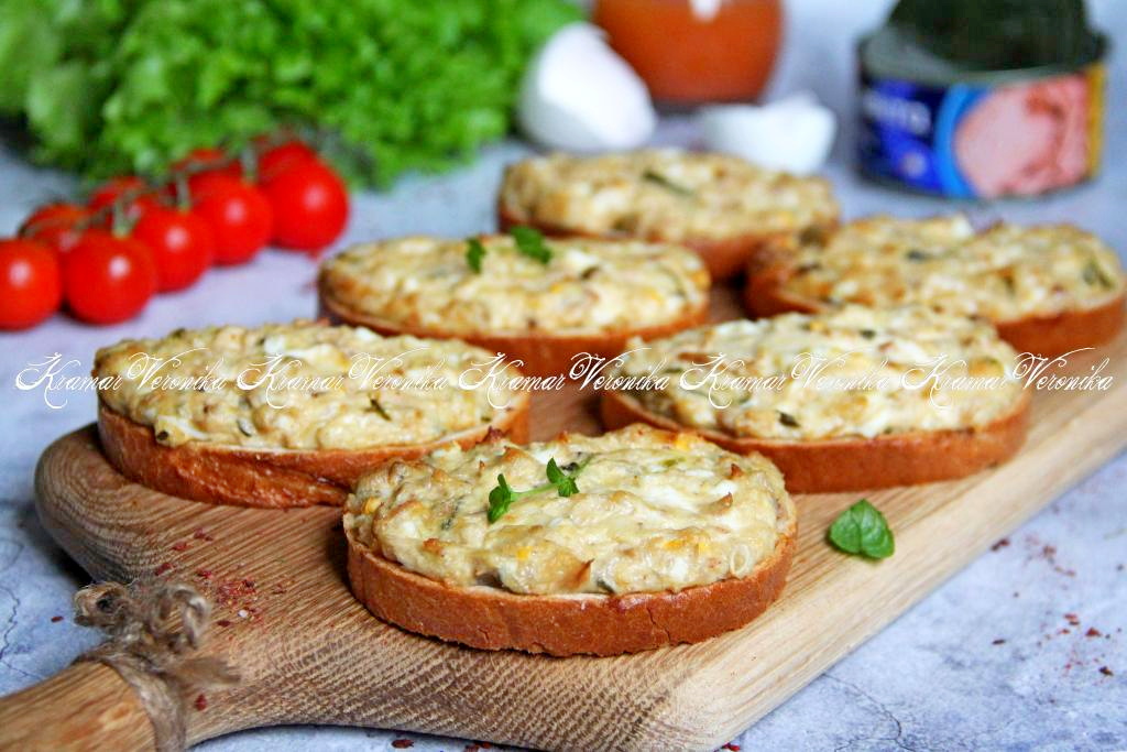 Достать вкусные, нежные бутерброды с тунцом из духовки, переложить на тарелку и горячими подать к столу.