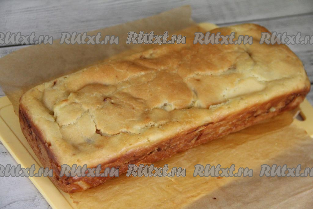 Готовность выпечки можно проверить сухой деревянной зубочисткой (если пирог готов, значит зубочистка останется сухой после прокола пирога). Готовую выпечку достать из духовки, слегка остудить в форме, а затем вынуть аккуратно пирог из формы, удалить пергамент.