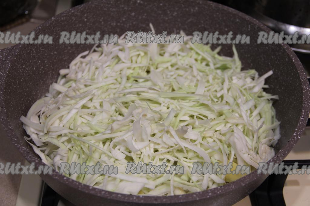 К обжаренной картошке выложить капусту, перемешать.