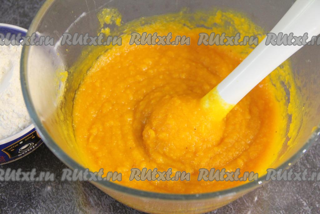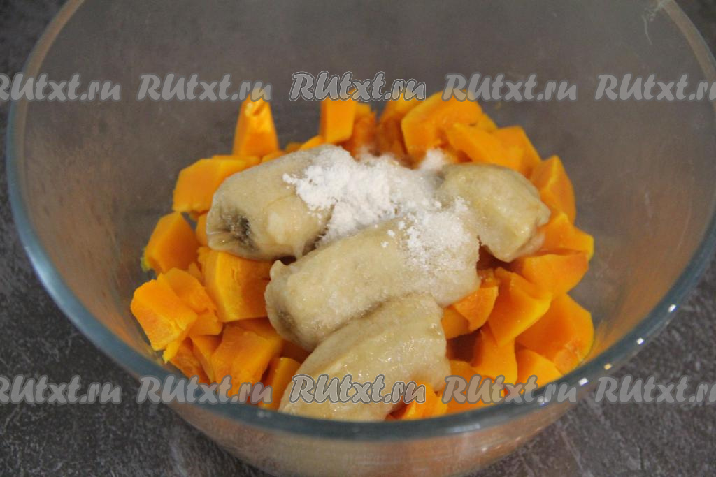 Пробить тыкву с бананом с помощью погружного блендера в пюре.