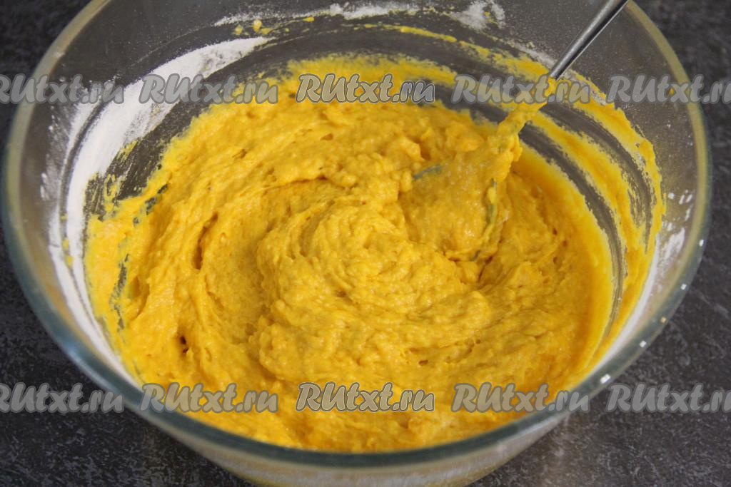 Перемешать тесто лопаткой. Тыквенно-банановое тесто должно получиться вязким, однородным, не очень густым.