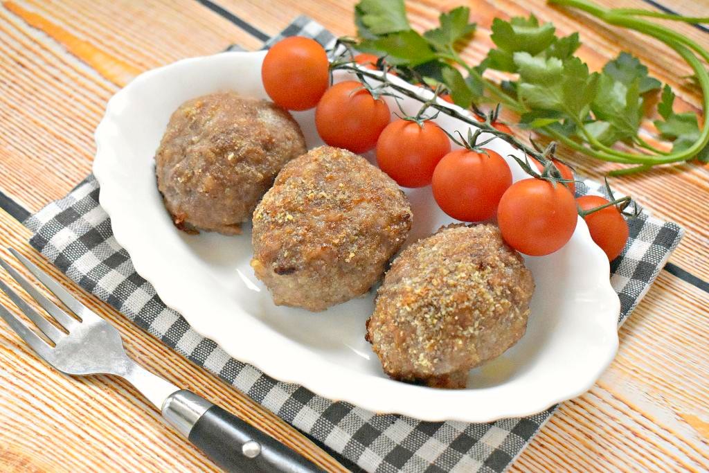 Вкусные, сочные котлеты, запечённые в панировочных сухарях в духовке, к столу подаём горячими со своим любимым гарниром (например, картошкой, гречкой, рисом или макаронами).