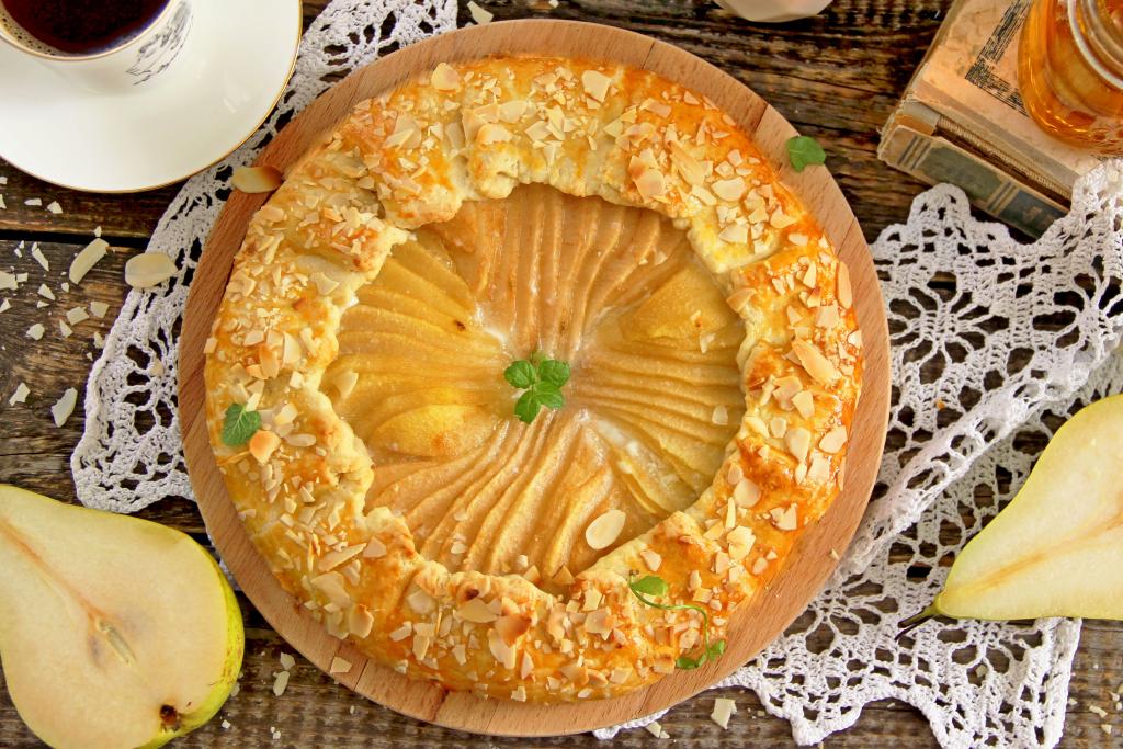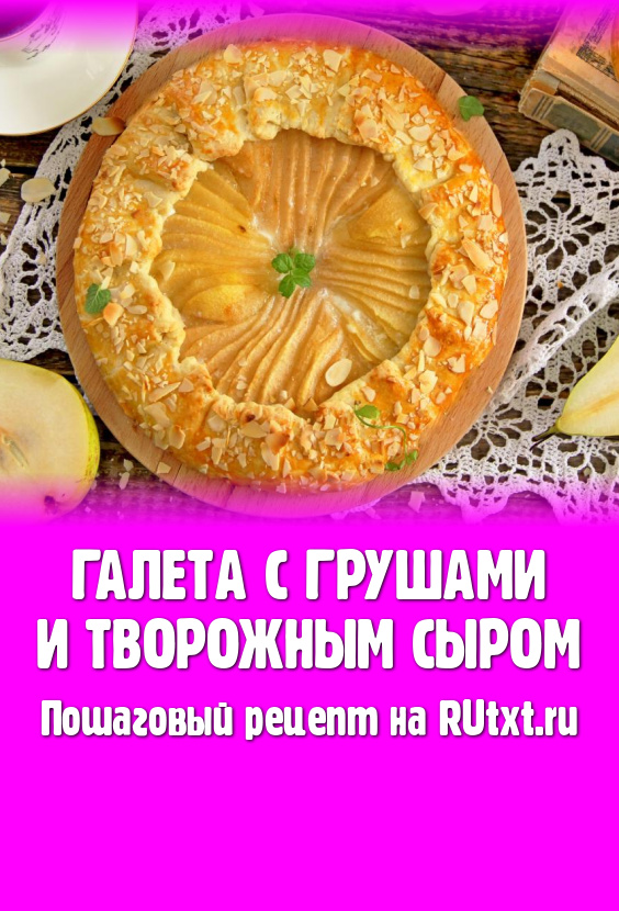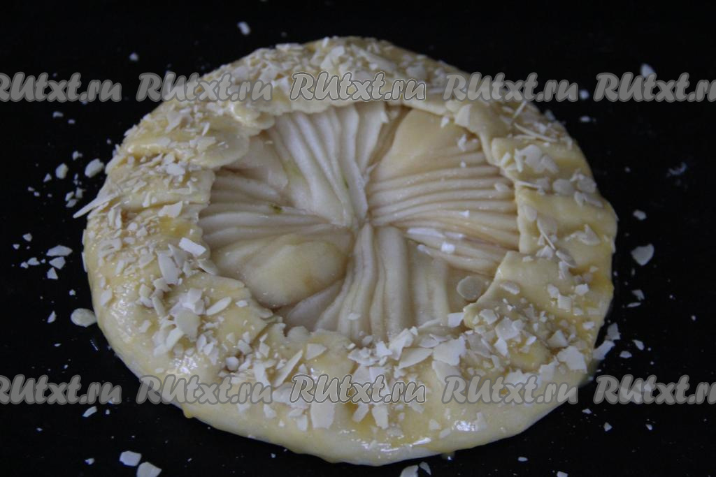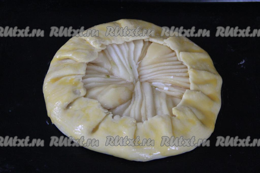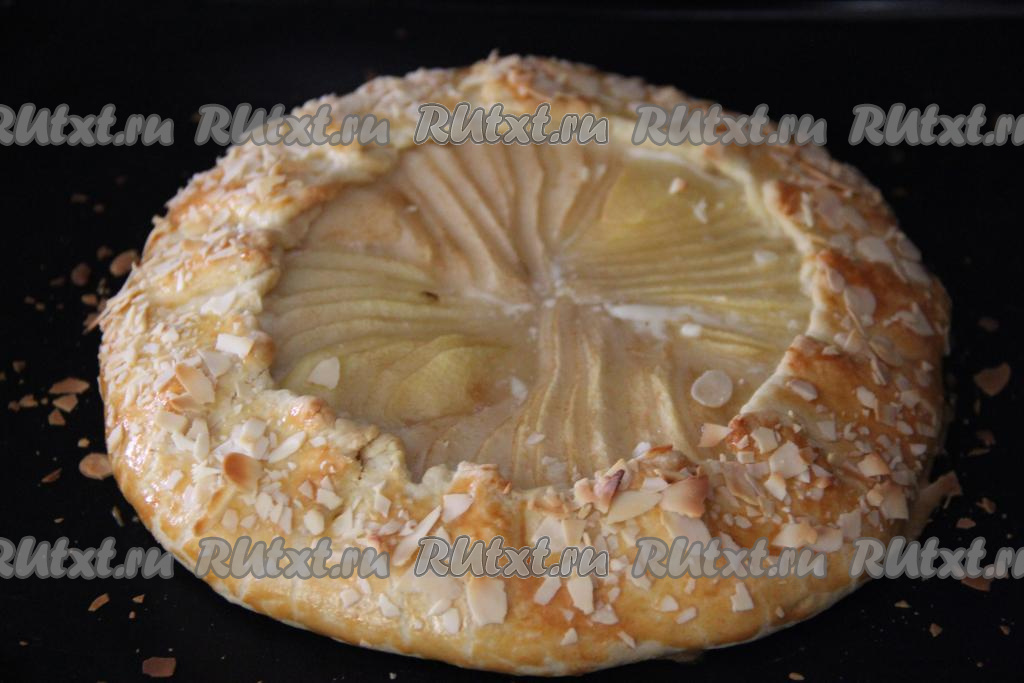 Выпекать галету с грушами и творожным сыром в разогретой духовке минут 30 (до золотистости теста) при температуре 200 градусов.
