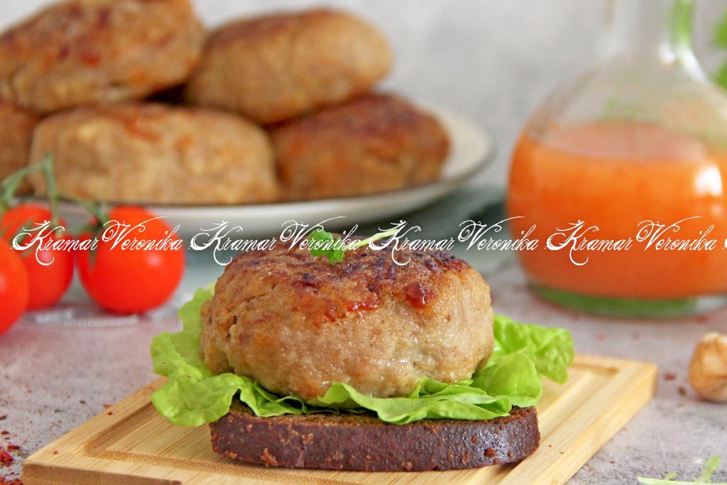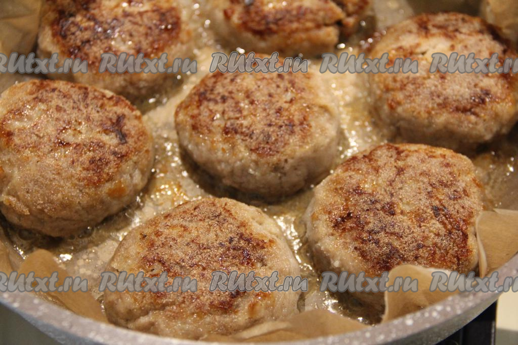 Жарить котлеты с двух сторон на среднем огне до золотистого цвета. А затем перевернуть котлетки, накрыть сковороду крышкой и протушить на медленном огне 7 минут.