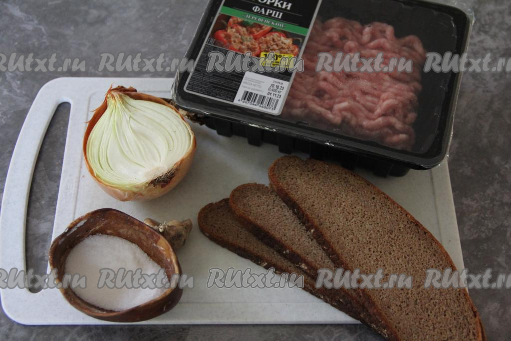 Подготовить продукты. Фарш можно использовала покупной или приготовить в домашних условиях, пропустив через мясорубку кусочки мяса. У меня был смешанный фарш из свинины и говядины.
