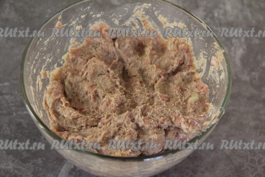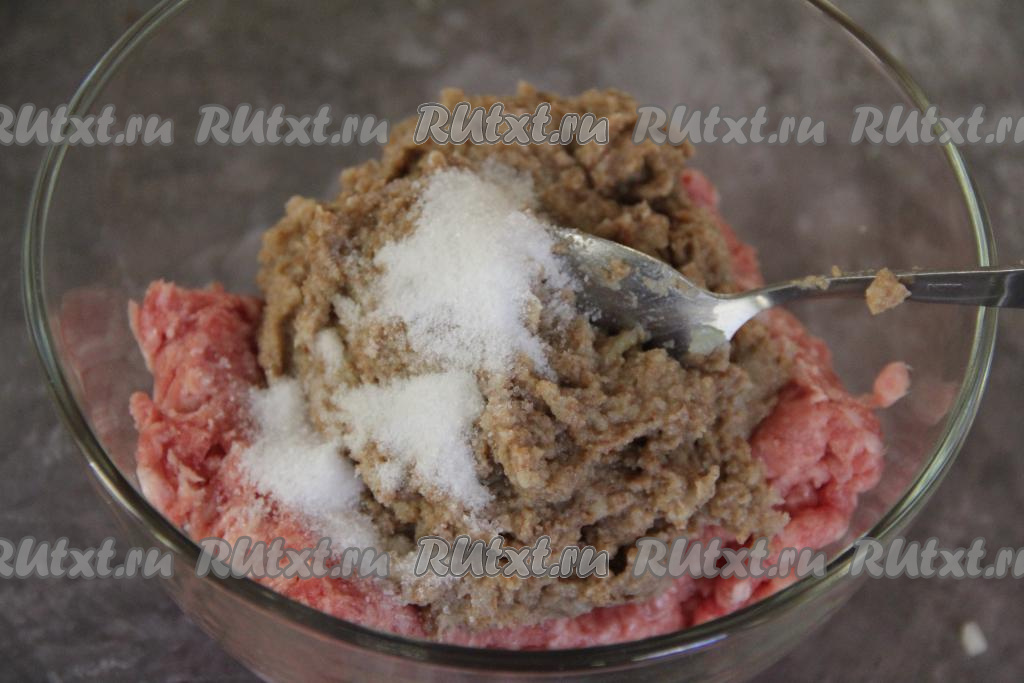 В глубокой миске соединить фарш, хлебно-луковую массу, добавить соль.