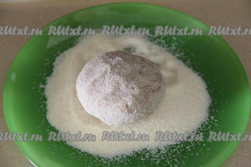 Примерно 2 столовых ложки манки (или муки) насыпать на плоскую тарелку. Из фарша сформировать котлеты (у меня получилось 7 штук) и обвалять их со всех сторон в манке (или муке).