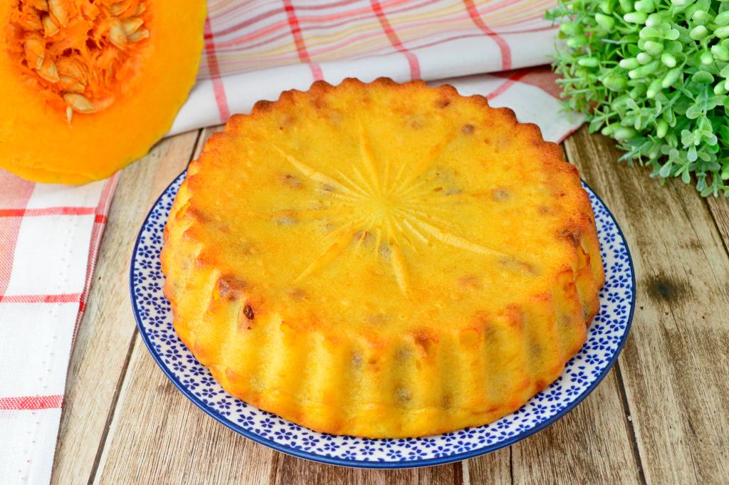 Нежную, вкусную, аппетитную творожную запеканку, приготовленной с тыквой и изюмом, к столу можно подать и тёплой, и полностью остывшей.