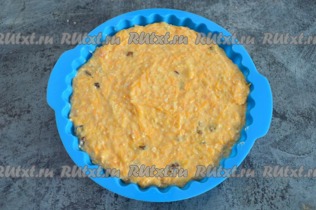 Выложить творожное тесто в форму для выпечки. Я взяла силиконовую форму диаметром 16 сантиметров, перед выкладыванием теста маслом её не смазывала, если у вас железная форма, тогда обязательно смажьте её дно и бока сливочным маслом.