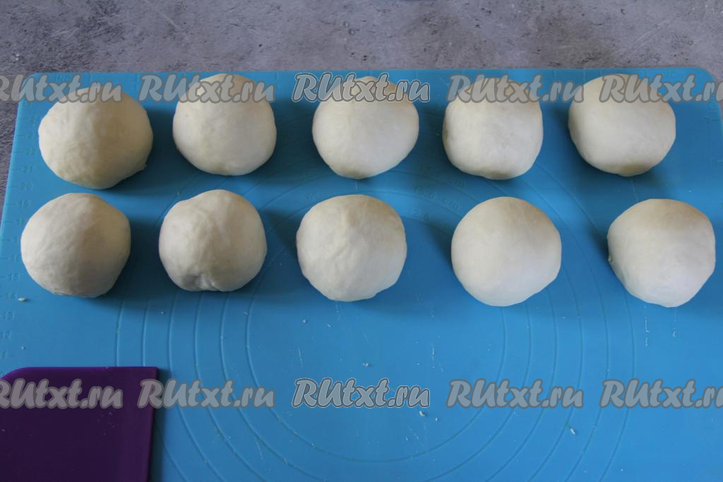 Разделить тесто на 10 равных частей, скатать из этих частей шарики.