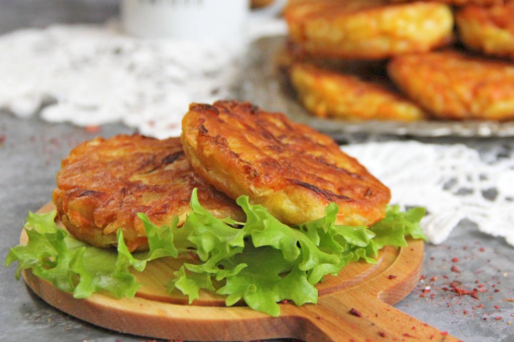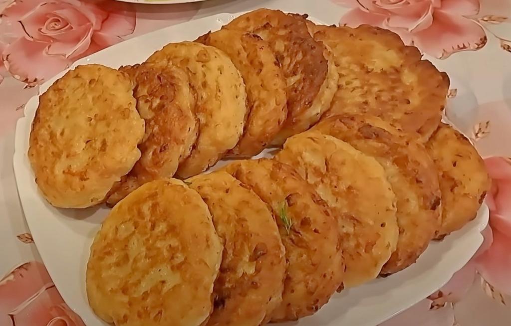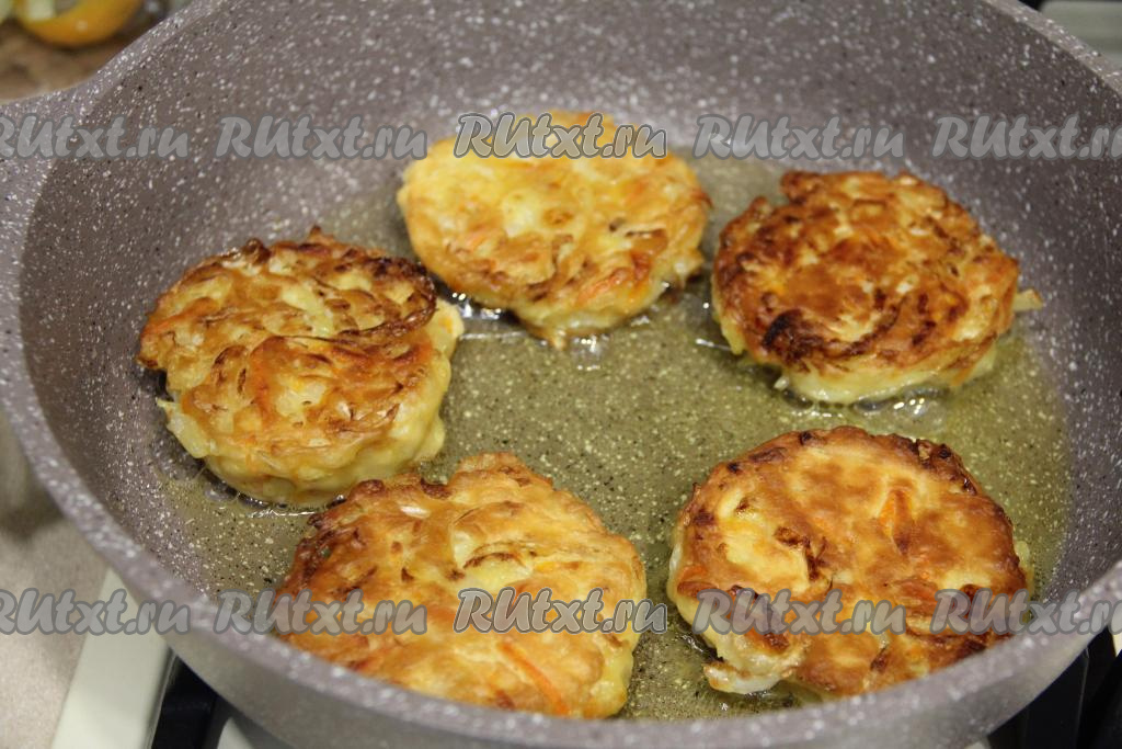 В сковороду влить растительное масло, хорошо разогреть. Выкладывать на разогревшуюся сковороду по одной столовой ложке теста, формируя круглые пирожки.