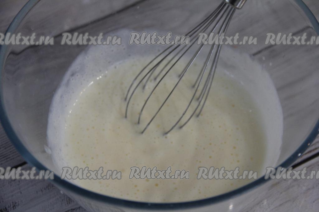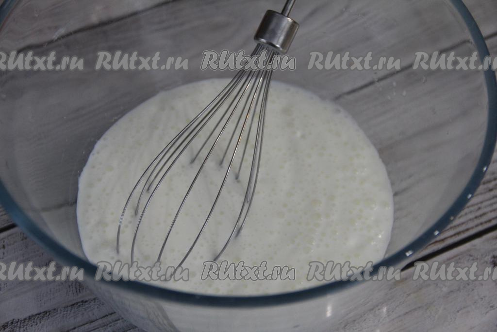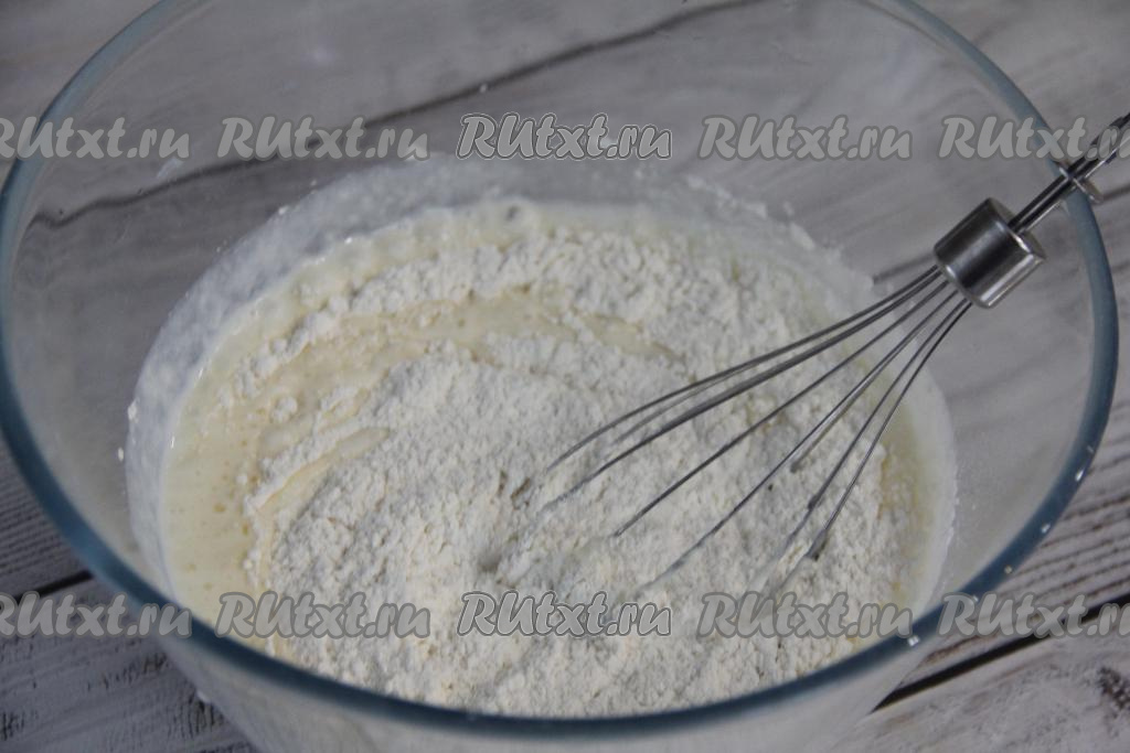 В кефирно-яичную смесь всыпать муку.