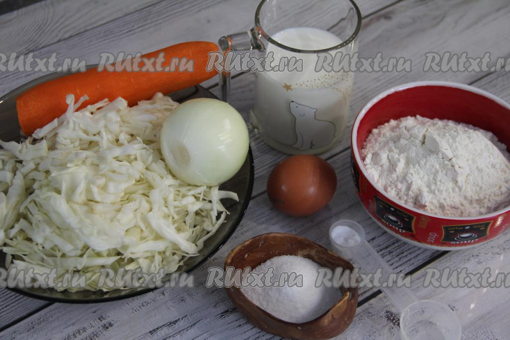 Подготовить продукты. Нарезать капусту на тонкие полоски. Лук и морковь почистить.