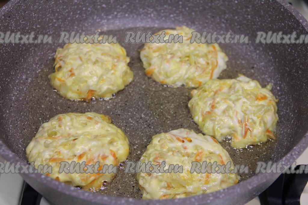 Жарить ленивые пирожки с капустой с двух сторон до золотистого цвета на среднем огне.