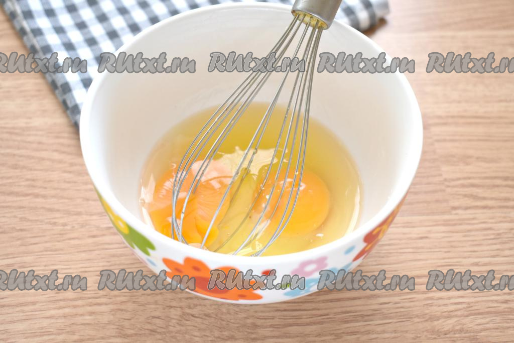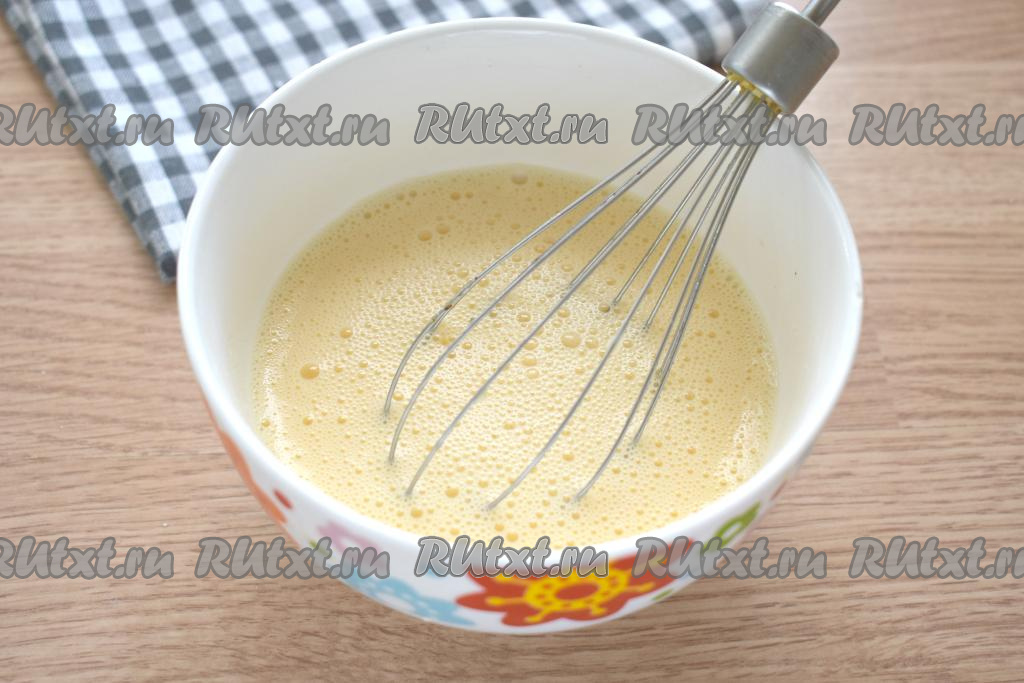 Молоко с яйцами перемешиваем венчиком так, чтобы получилась однородная смесь.
