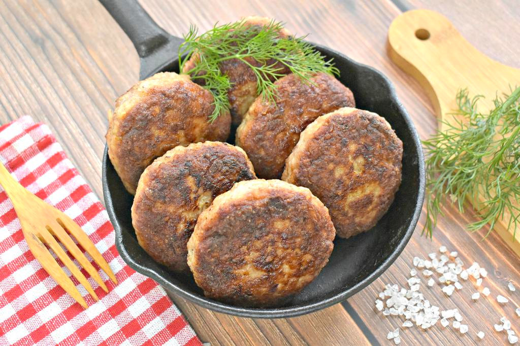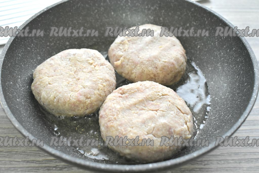 Затем котлеты переворачиваем, убавляем огонь, сковороду накрываем крышкой и жарим 6 минут.