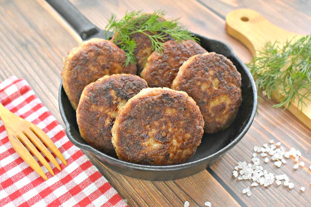 Разогреваем на сковороде примерно 2-3 столовых ложки растительного масла. С заготовок котлет стряхиваем лишнюю муку и выкладываем в горячее масло. На среднем огне жарим котлеты из фарша с капустой 5 минут.