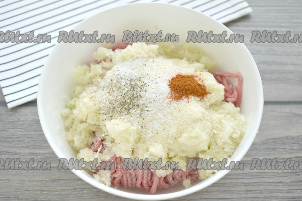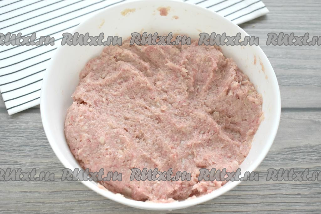Тщательно перемешиваем ингредиенты между собой. Масса для котлет получается нежной, не очень плотной. Даём массе из фарша и капусты постоять минут 15, за это время манка немного разбухнет.