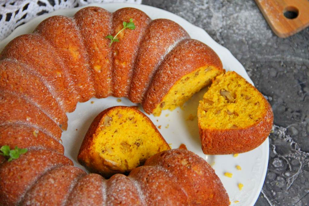 Очень вкусный, яркий тыквенный кекс с грецкими орехами нарезать на кусочки и подать к столу. Уверена эта выпечка с приятной мелкопористой текстурой понравится многим!