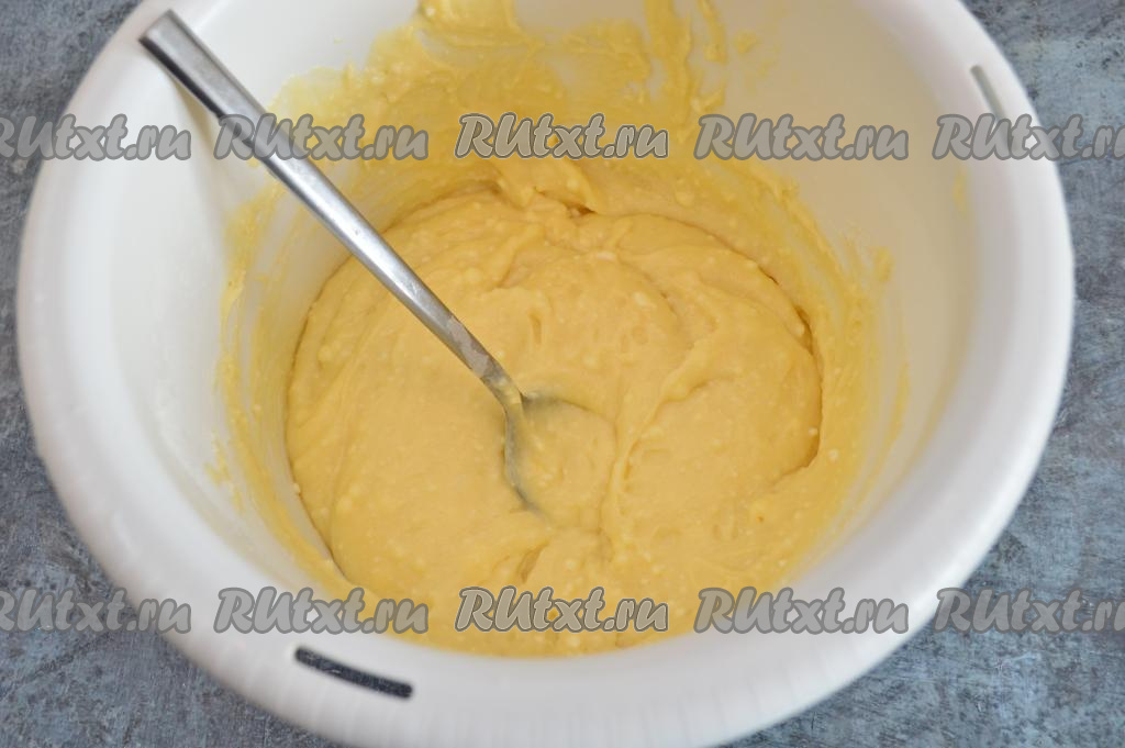 Как только творожное тесто для кексов станет в меру густым, как на фото, медленно стекающим с ложки, значит больше муку добавлять не нужно.
