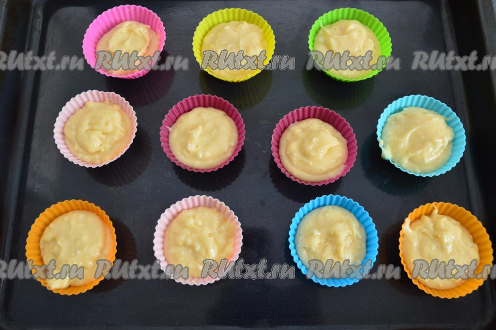 Если используете для выпечки металлические формы, тогда обязательно смажьте их перед выкладыванием теста сливочным маслом, чтобы выпечка не пристала к стенкам формочек.