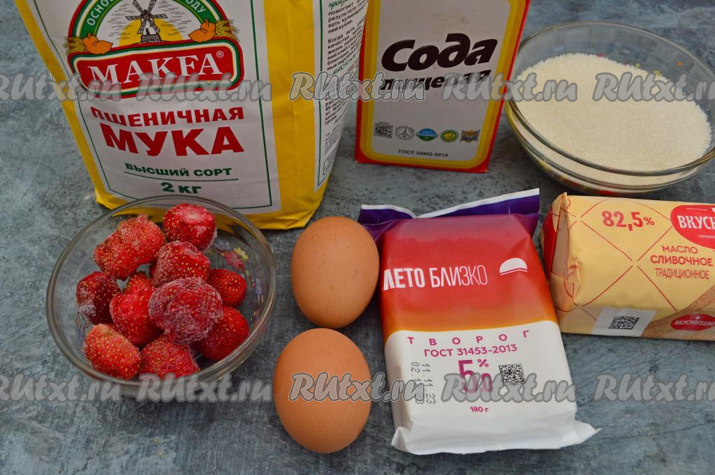 Подготовить продукты. Сливочное масло я советую брать жирностью не менее 82% и проверенного производителя. Клубнику можно взять свежую или замороженную. Свежие ягоды нужно вымыть, удалить чашелистики, обсушить.
