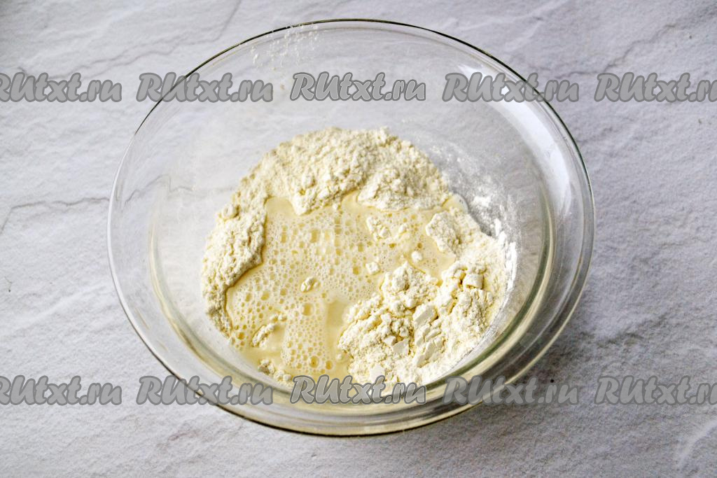 Достаточно быстро в процессе перемешивания смесь станет тёплой, после этого тесто нужно будет замешивать руками. Тесто должно получиться мягким, но упругим, совершенно не липнущим к рукам.
