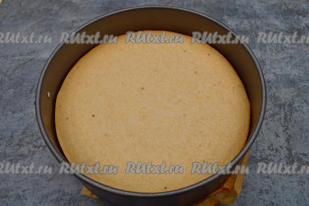 Пока манка набухает, сразу поставить духовку на разогрев, выставив температуру 180 градусов. Дно формы для запекания (я взяла форму диаметром 16 сантиметров) застелить пекарской бумагой. Бока и дно формы, застеленное бумагой, смазать небольшим кусочком сливочного масла.