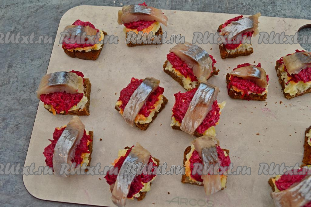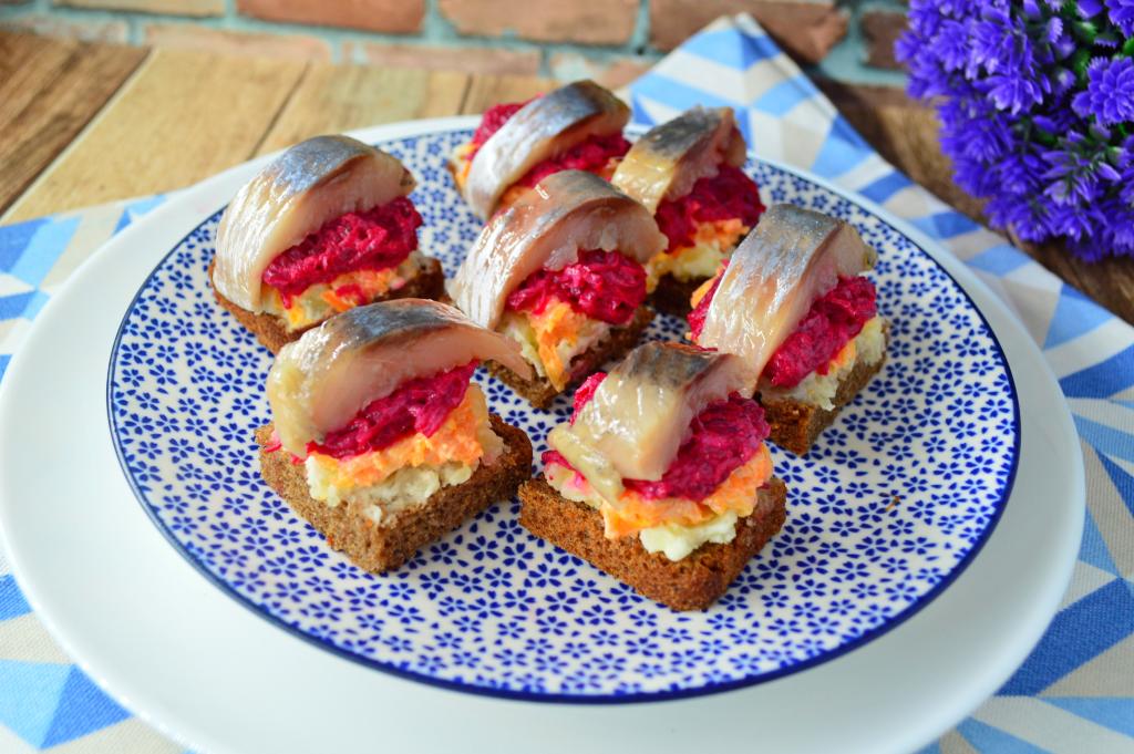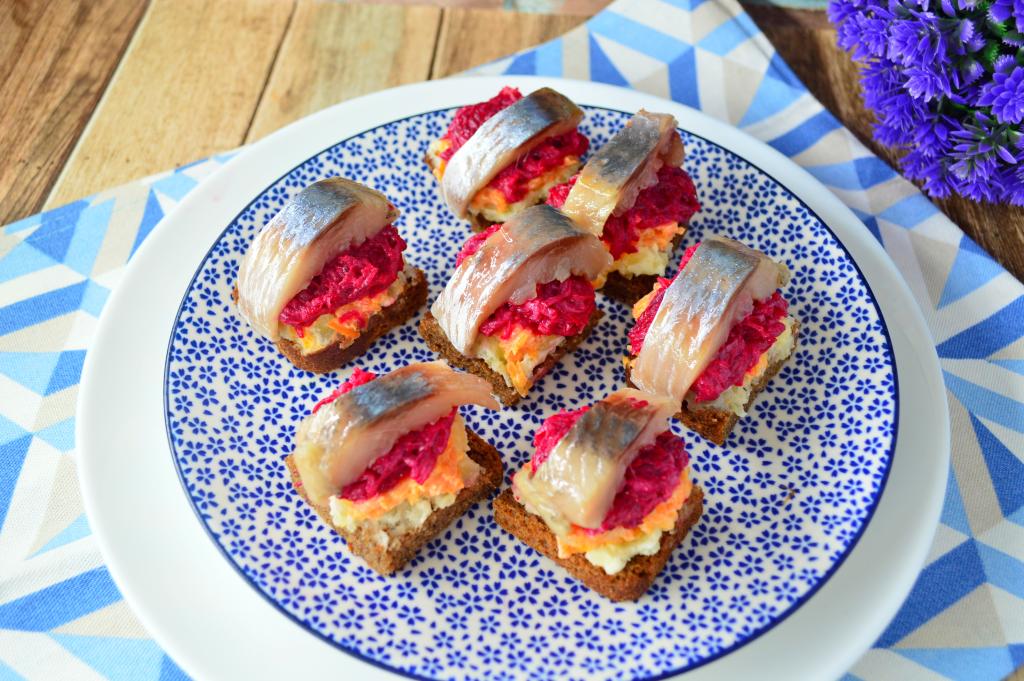 Многие из нас любят салат "Селёдка под шубой". Поэтому это блюдо часто присутствует на праздничных застольях. Предлагаю, взяв за основу этот салат, приготовить канапе "Селёдка под шубой". Эта порционная закуска получается вкусной, нежной, яркой. Готовится предельно просто. Благодаря эффектному внешнему виду и прекрасному вкусу съедается очень быстро!