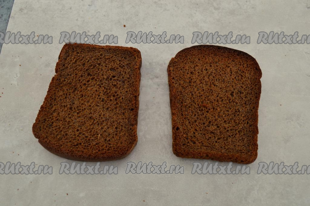 Для приготовления канапе подойдёт любой чёрный хлеб, мне нравится "Бородинский". Ломтики хлеба подрумянить в тостере или на сухой сковороде.