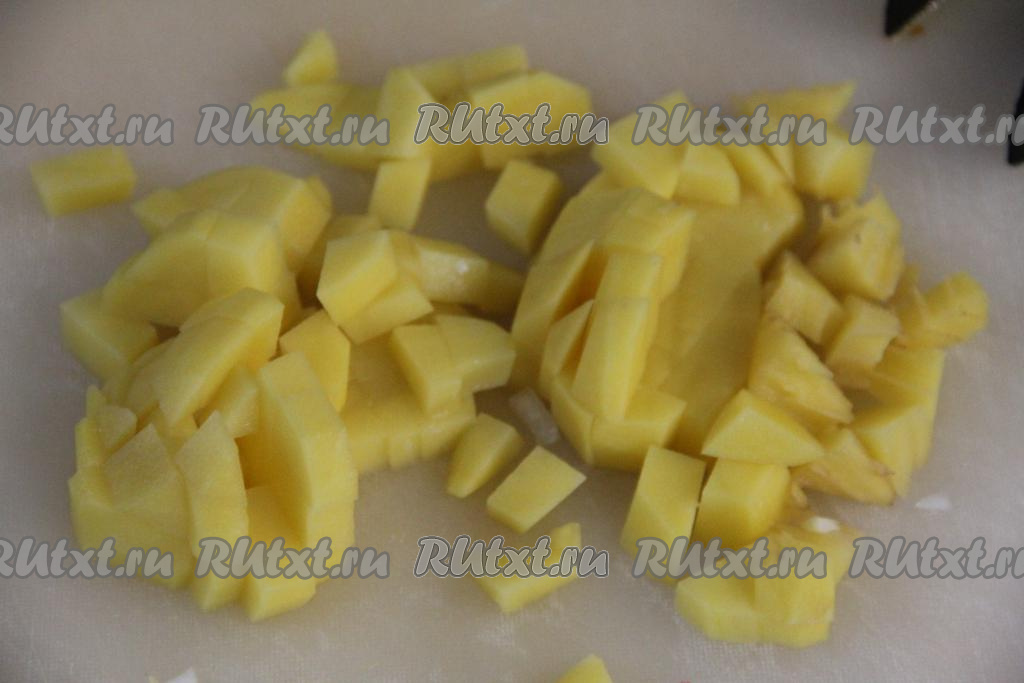 Картошку почистить и нарезать на средние кубики.