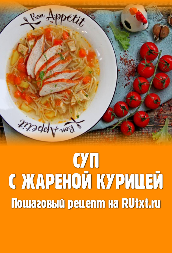Вкусный, насыщенный, ароматный суп, приготовленный с жареной курицей, разить по тарелкам и горячим подать к столу.