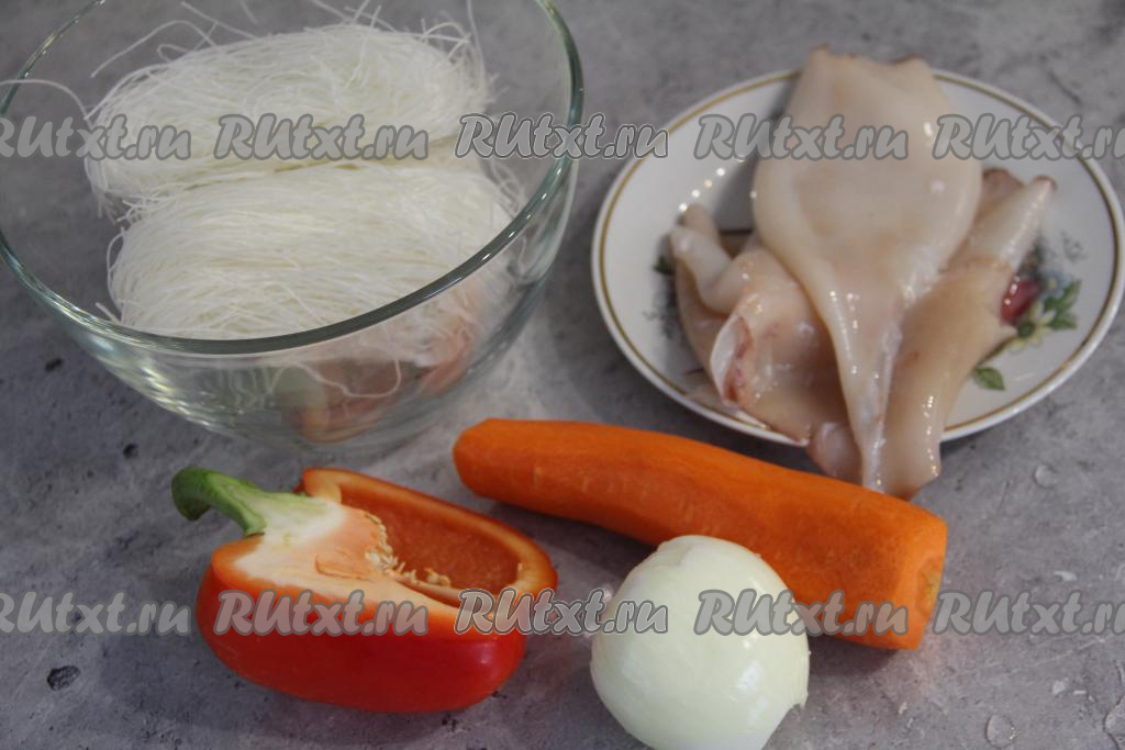 Предлагаю приготовить на сковороде фунчозу с кальмарами и овощами. Блюдо получается очень вкусным, пикантным и сытным. Рецепт простой, даже кальмаров предварительно отваривать не нужно. Благодаря овощам блюдо получается очень аппетитным, а кальмары делают его вкус нежным. Всем любителям фунчозы и морепродуктов советую этот рецепт!