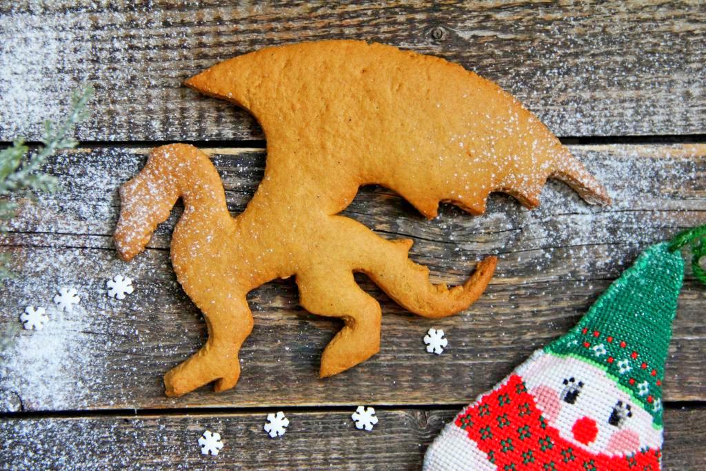 Готовые пряники немного остудить на пергаменте (или на коврике), на котором они выпекались, а затем переложить на стол и полностью остудить. Имбирные пряники "Дракон" можно подать к праздничному столу на Новый год или угощать ими друзей в новогодние праздники и на Рождество.