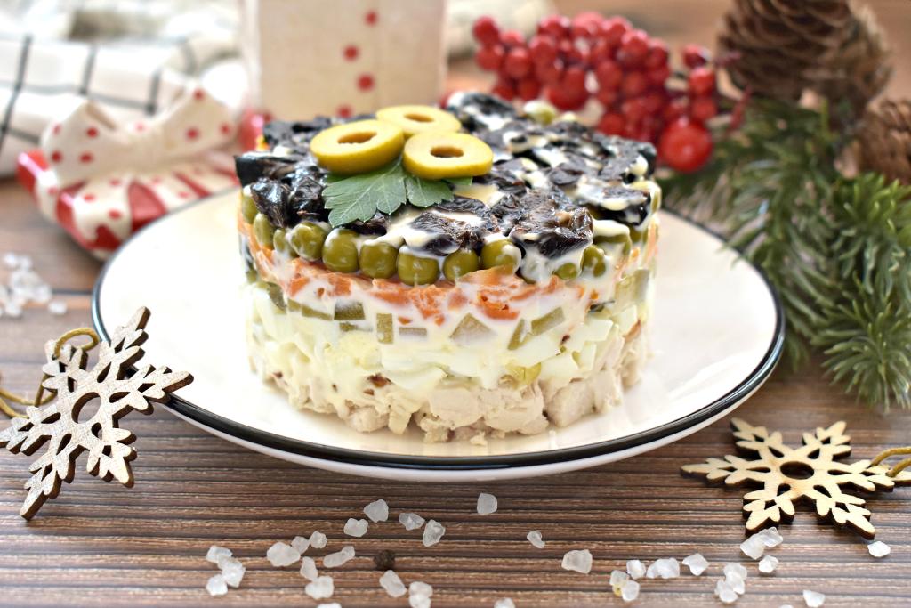 Предлагаю к праздничному столу приготовить сочный, вкусный слоёный салат "Прага". В этом блюде прекрасно сочетаются нежное мясо курицы и насыщенный вкус чернослива, а в результате получается изысканный и яркий салат. Выкладывается этот салат слоями, поэтому выглядит на праздничном столе эффектно. Всем советую приготовить это блюдо для себя и своих близких!