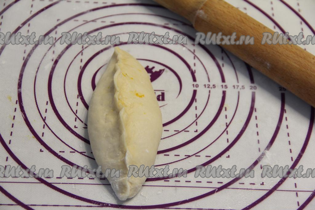 Соединить тесто над яблочно-тыквенной начинкой, хорошо скрепить края, формируя пирожок.