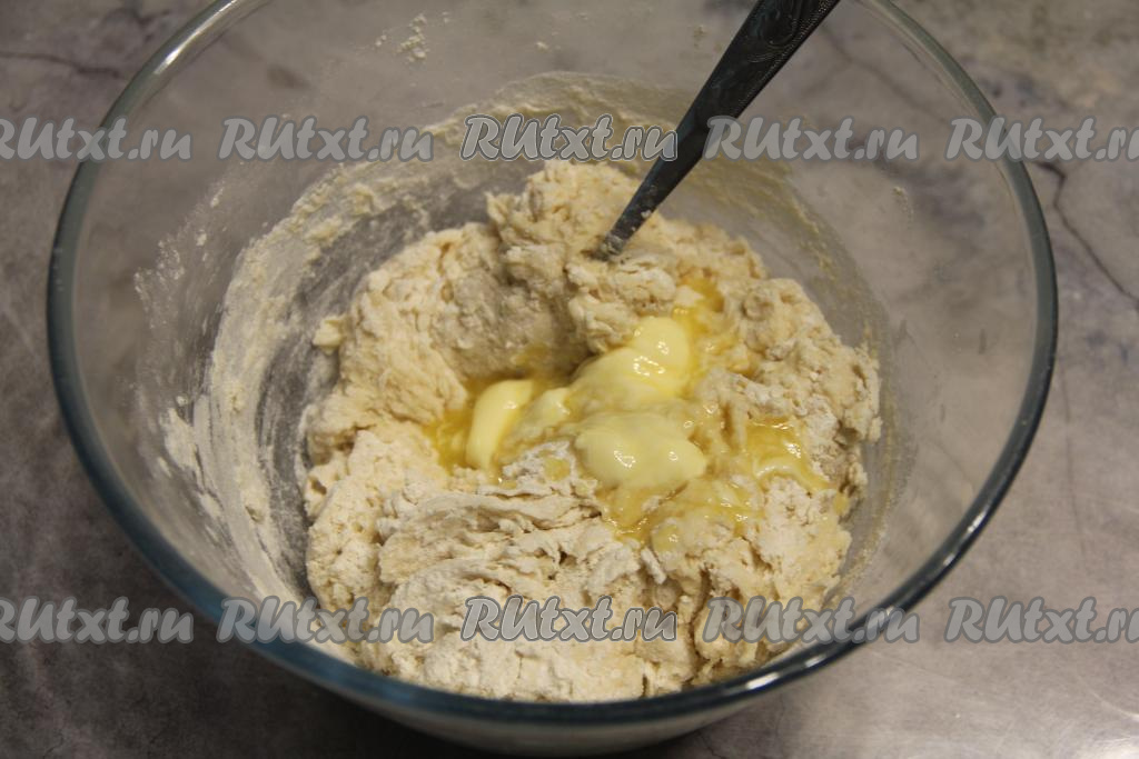 Растопленное масло влить в тесто.