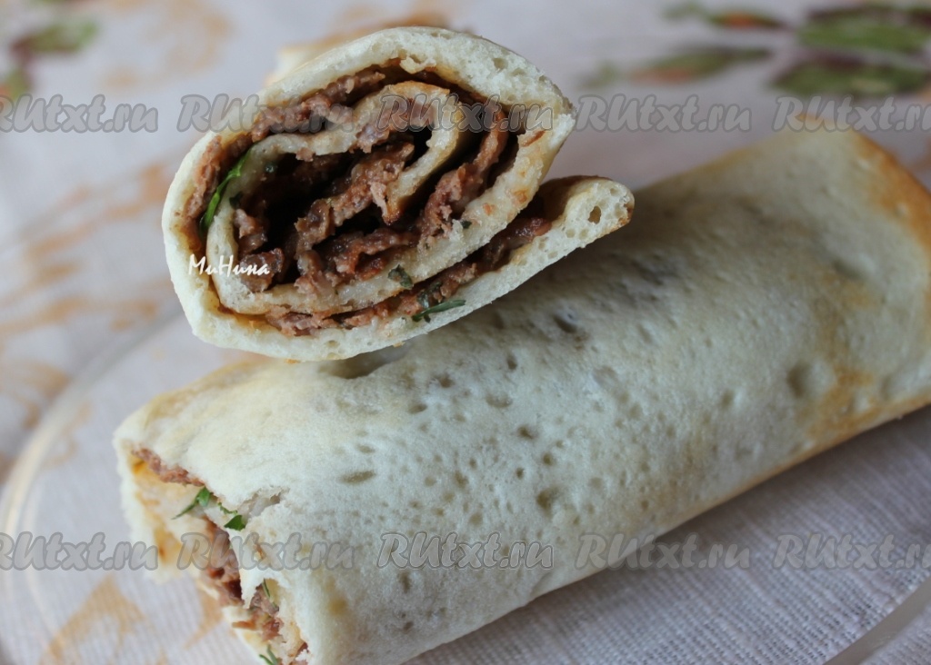 Предлагаю рецепт вкусного и сытного блюда из кухни Ближнего Востока - лахмаджун, который ещё называют турецкой пиццей. Лахмаджун стал популярным фастфудом у туристов, а представляет собой тонкую лепешку из дрожжевого теста с рубленым мясом и томатным соусом, закрученную рулетом. Классический лахмаджун весит 170 грамм, но думаю, что для домашнего варианта это и непринципиально, и маловато...