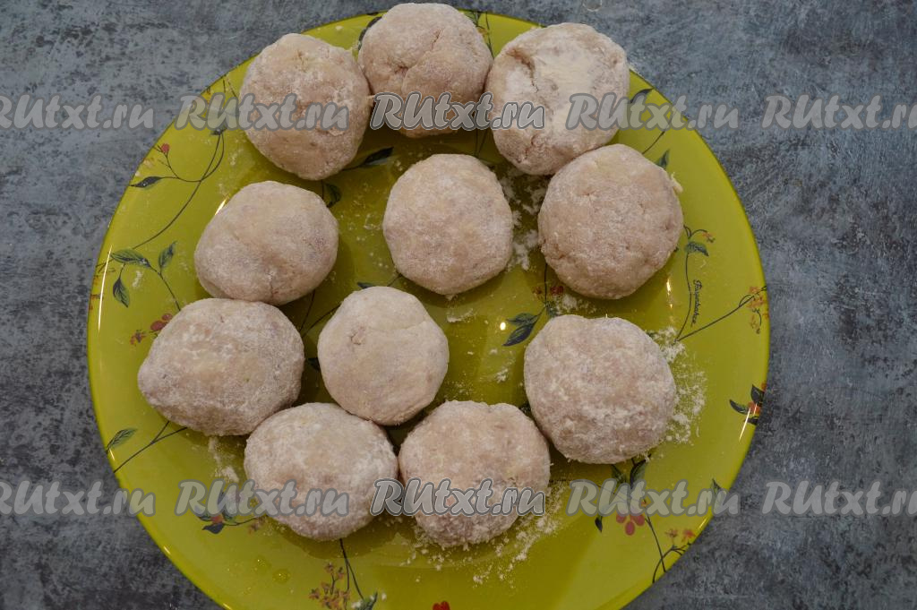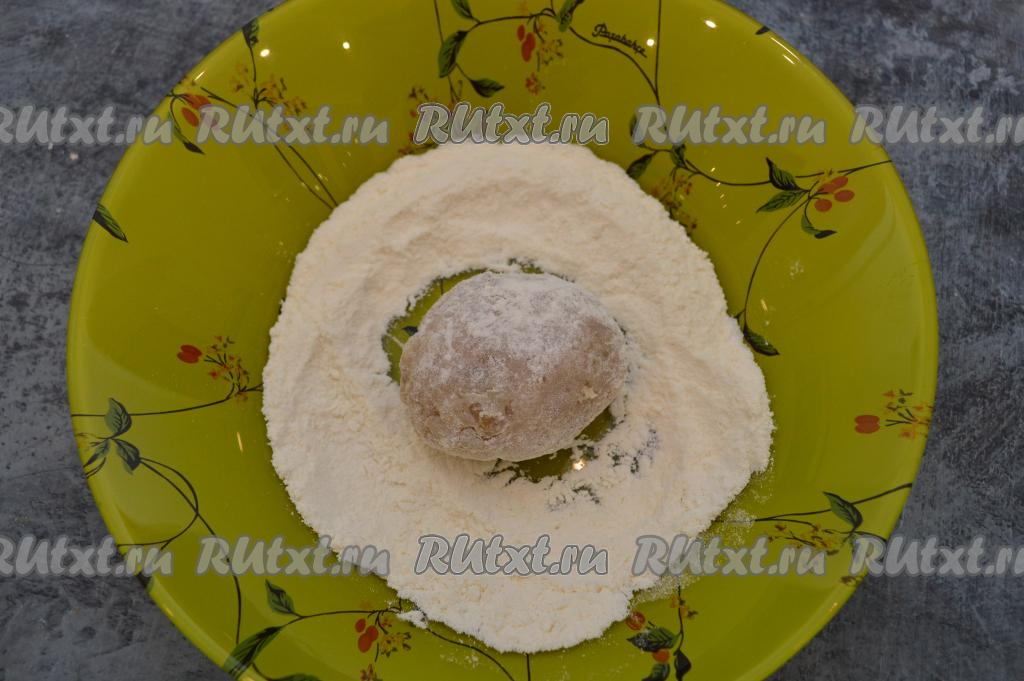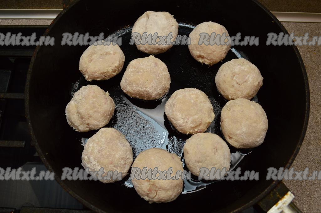 В глубокую тарелку насыпать муку. Сформировать из фарша круглые (или овальные) котлеты и обвалять их в муке со всех сторон.