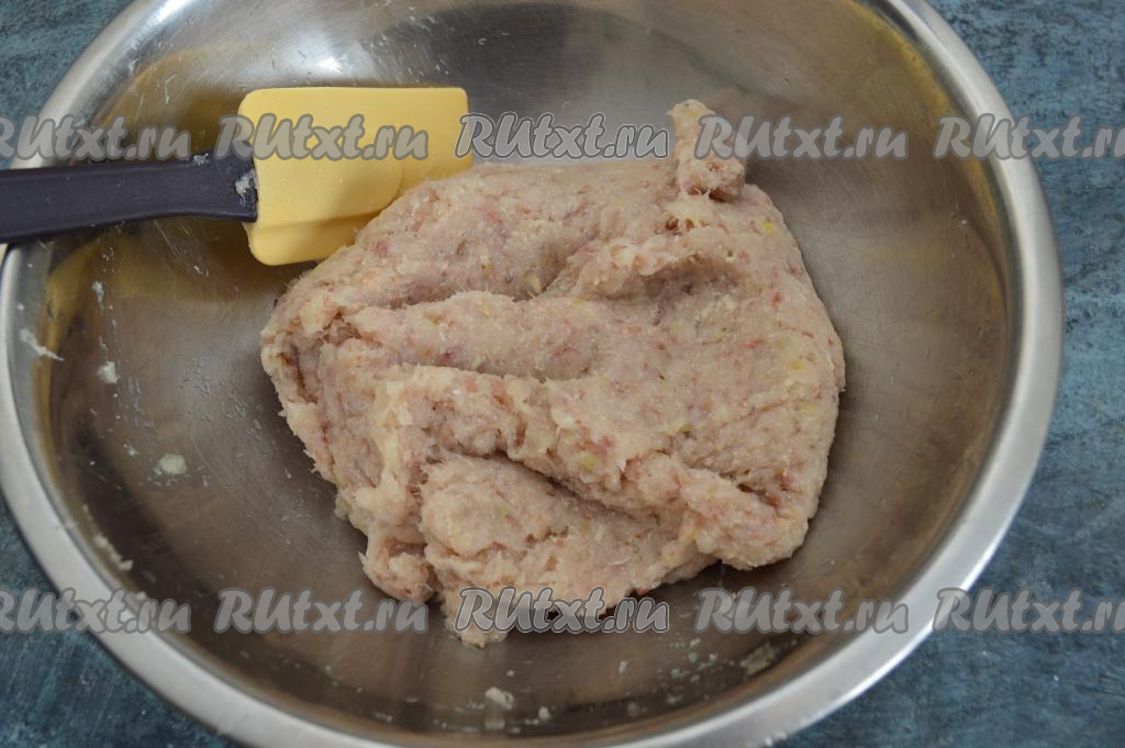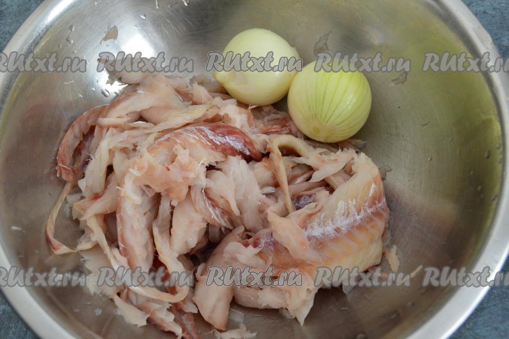 Я обычно перекручиваю филе минтая с луком через мясорубку дважды. В минтае мало костей, но даже если вдруг какая-то маленькая косточка останется, то, пройдя дважды через мясорубку, она перемелется.