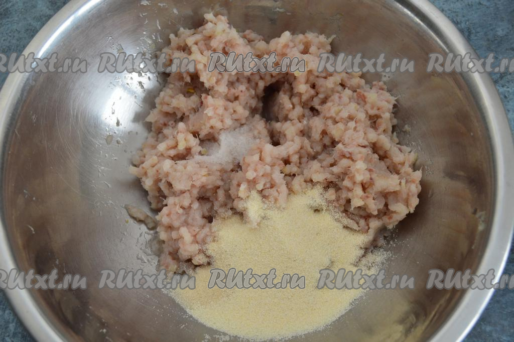 Манка сделает рыбный фарш более вязким и котлеты, хотя мы их и готовим без яиц, не будут разваливаться во время жарки.