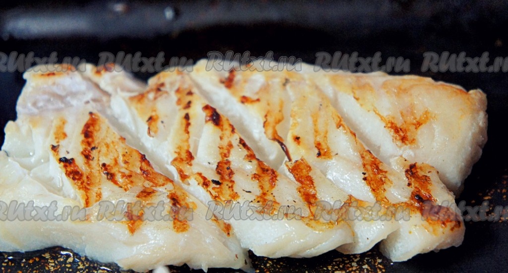 Треску обжарить на сковороде-гриль без добавления масла по 1-2 минуты с каждой стороны.