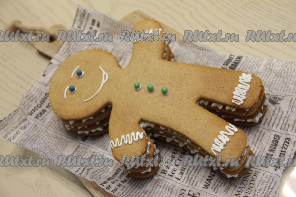 Торт "Пряничный человечек", приготовленный из медовых коржей, получается очень ароматным и вкусным, он украсит любой праздничный стол, включая новогодний.